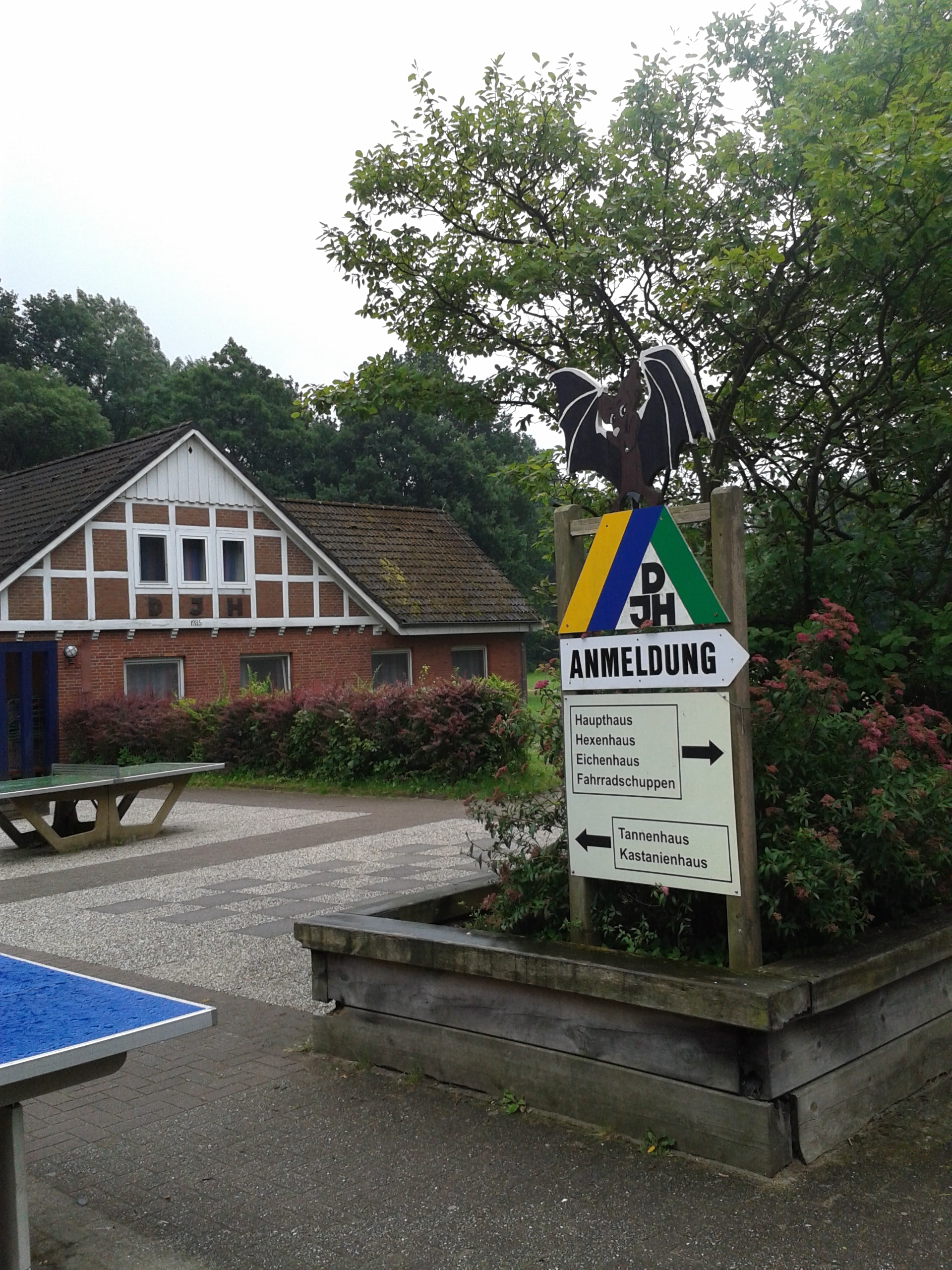 Die letzte Etappe führt uns zur Jugendherberge in der Wingst, einem Waldgebiet des Cuxlandes zwischen Nordsee und Elbe. Für uns ist es schwer, das Gelände etwas abseits der Ortsstraße sofort zu finden. Das hat aber auch Vorteile: die Jugendherberge grenzt unmittelbar an den Wald und bietet neben fünf Bettenhäusern ein ca. 40.000 qm großes Gelände zum Spiele und Relaxen in der ruhigen Natur.