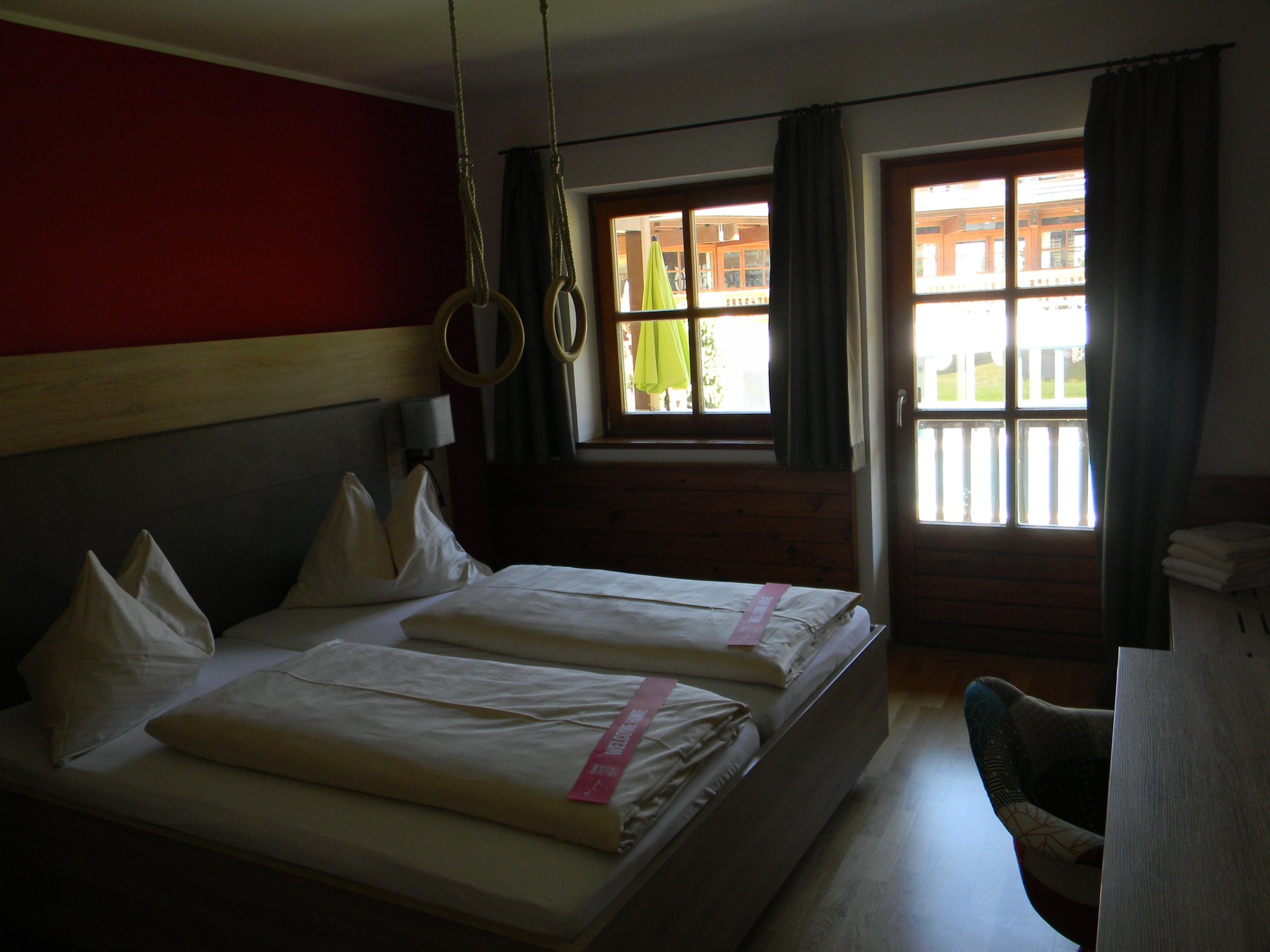 Nach dem Essen bestätigt sich aber leider doch das Vorurteil der "lauten Jugendunterkunft". Im Innenhof, zu dem unser Zimmer liegt, läuft bis kurz vor 22 Uhr laute Musik und das Spiel einer Jugendgruppe ist noch weit danach zu hören. An Schlaf für unseren Sohn, der normalerweise gegen 20 Uhr ins Bett geht, ist nicht zu denken. Auch das Abdunkeln des Zimmers gestaltet sich wegen der lichtdurchlässigen Vorhänge sehr schwer.